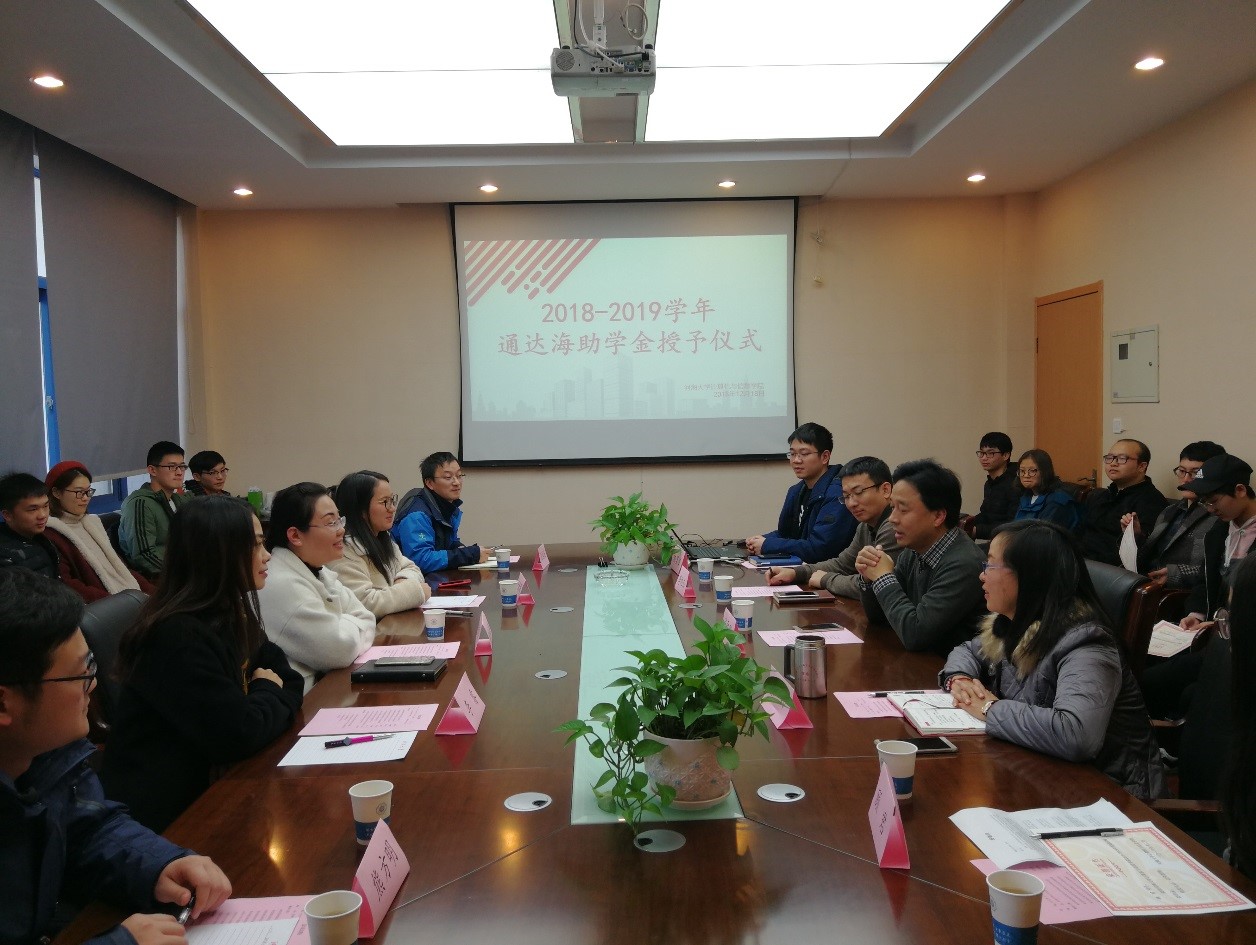 12月18日,学院通达海助学金颁奖仪式在勤学楼3305会议室举行。南京通达海信息技术有限公司行政总监徐东惠、总经理助理阮雅珊、人力资源部经理李睿、开发部经理熊方明、开发部高工仇国庆,人体艺术 计算机与信息学院党委书记张雪刚、党委副书记张炜、信息与通信工程系主任李旭杰以及本科生辅导员陈昊迪参加此次颁奖仪式。