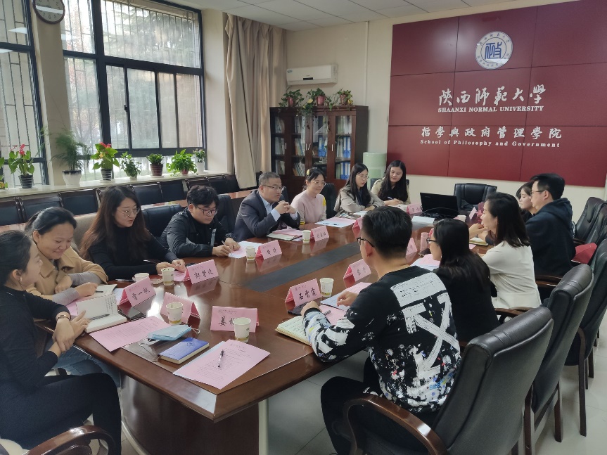 在陕西师范大学交流期间,哲学与政府管理学院党委副书记李晔介绍了学院的历史、发展与现状,并重点围绕陕西师范大学“思苇”辅导员理论素养提升工作室的运行模式、管理方法和研究成果进行了详细介绍。刘春田副书记对陕师大哲政学院的热情接待表示感谢,并简要介绍了信息学部和计信学院的基本情况。双方还就思政育人工作体系、学工系统队伍建设、学生培养管理模式等方面开展了交流探讨。