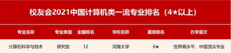 根据全国第三方大学评价机构艾瑞深校友会网(Cuaa.Net)独家撰写、科学出版社正式出版发行的《2021校友会中国大学排名—高考志愿填报指南》里最新发布的2021中国计算机类一流专业排名,信息学部计算机科学与技术专业荣膺2021年中国六星级专业(6★)美誉,全国并列第12,跻身世界高水平、中国顶尖研究型专业行列,在江苏省位列第一。同时2021年武书连排行榜,649家单位参评,计算机科学与技术专业位列全国第24,处在头部前3.88%。