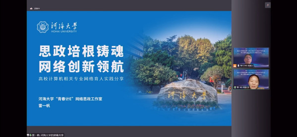 计信院本科生辅导员雷一帆以《思政培根铸魂,网络创新领航》为题,从把握思政工作主旨、搭建网络育人平台、创新思政教育实践三个方面,就学院“青春计E”网络思政工作室的建设与成效与参会人员进行了交流。江苏省计算机学会法人、计算机伦理与职业修养专委会主任、南京大学计算机学院党委书记武港山充分肯定了人体艺术 在网络育人方面的实践,尤其是“青春计E”网络思政工作室平台的建设,其做法对高校网络育人的实施有较强启发意义。