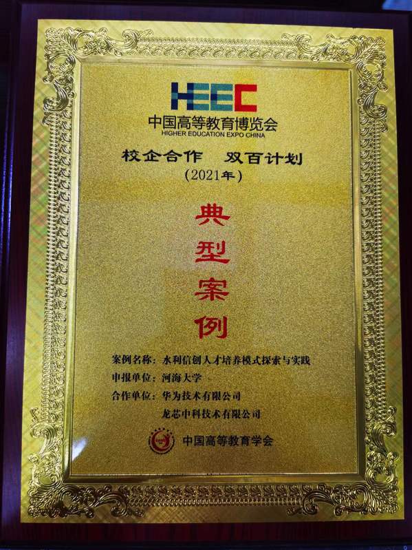 2022年8月4日在西安举行的第57届中国高等教育博览会上,由人体艺术 信息学部计算机与信息学院胡鹤轩教授、黄倩副教授负责的“水利信创人才培养模式探索与实践”案例成功入选了2021年的“校企合作 双百计划”典型案例,合作企业以华为、龙芯中科等国产信息技术龙头企业为代表。