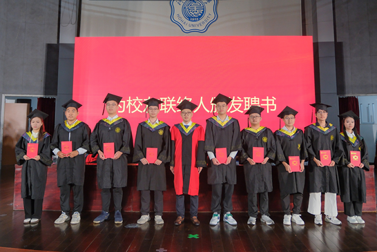 毕业典礼上,学院党委书记蒲晓东、副院长张鹏程、副院长唐斌向15名2024届毕业生颁发校友联络人聘书,党委副书记张剑宇指出,校友工作联络员是校友与母校、学院沟通的桥梁,是学院团结校友、开展校友工作的中坚力量,希望大家充分发挥自身优势,积极主动做好校友联络服务工作。
