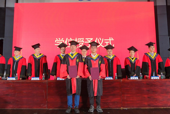 学院领导和老师分别为现场每一位毕业生拨穗正冠、颁发学位证书并合影留念。