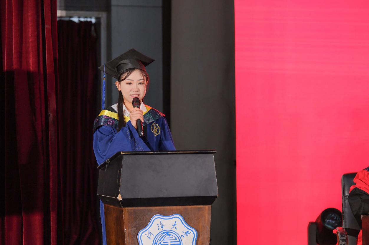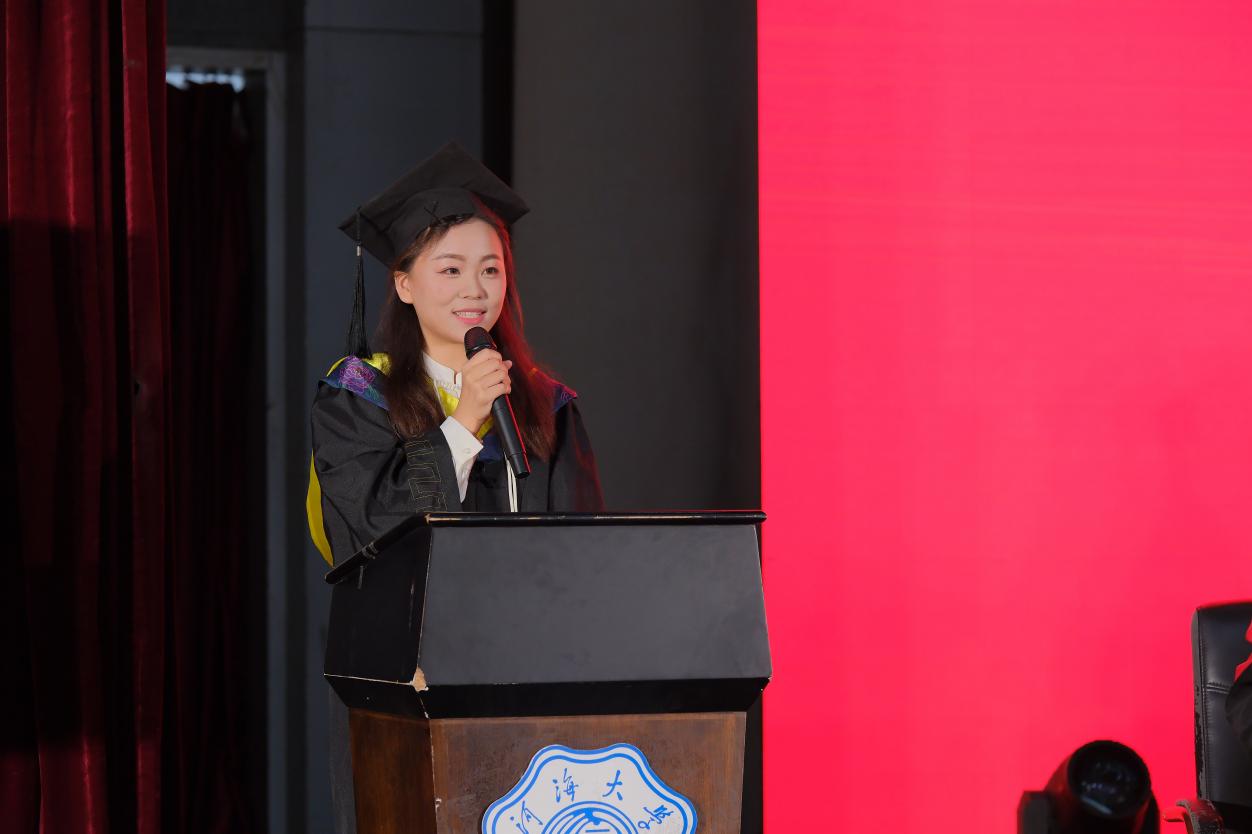 本科生毕业生代表王紫晔和研究生毕业生代表林宇轩深情回顾了在学校、学院的求学时光,对精心培育、关心指导、默默支持的老师、亲友、同学们表达了最衷心的感谢,表示要肩负起新时代的重任,脚踏实地,砥砺前行。