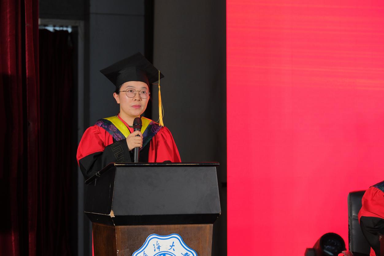 教师代表吉顺慧副教授结合自己的学习工作经历,勉励各位毕业生保持终身学习的态度,不断提高技术能力水平,同时要敢为人先,勇于创新,当好主人翁,建功新时代,为科技强国贡献自己的力量。