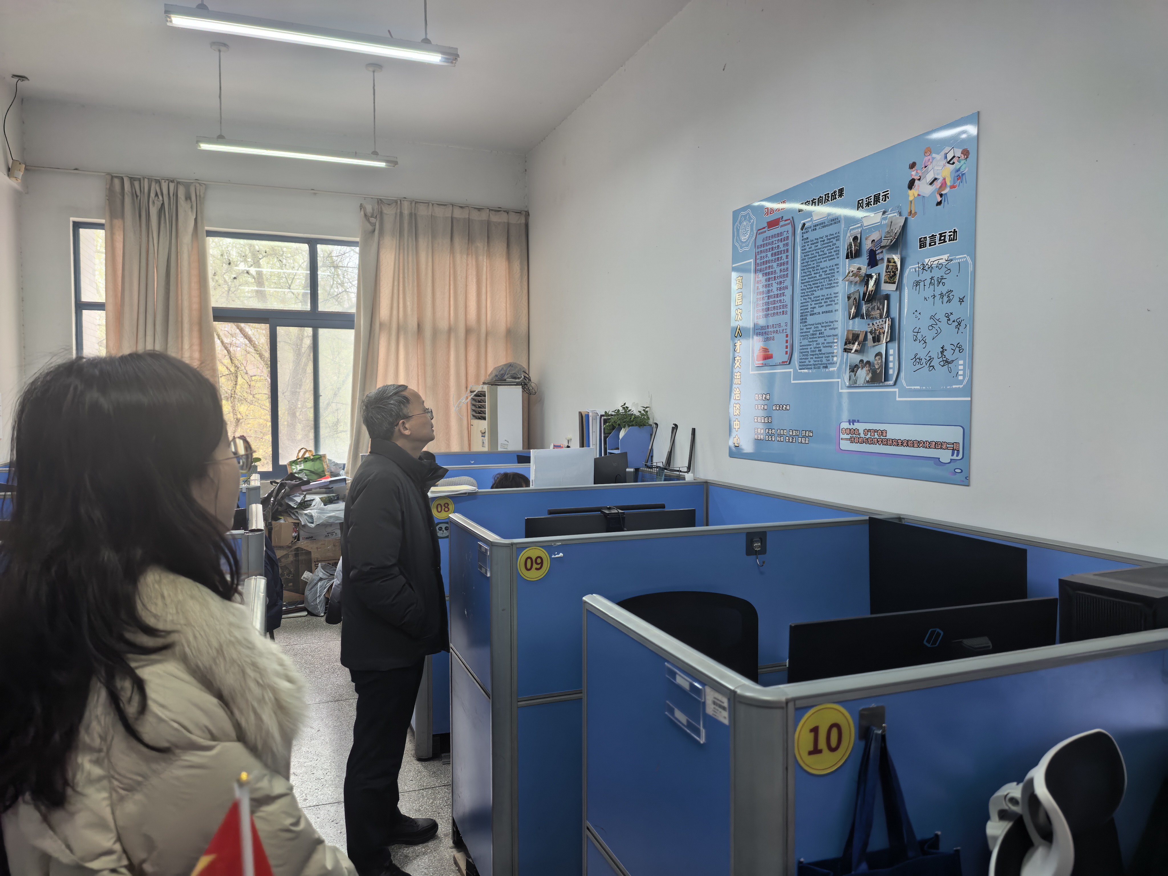 3月4日,蒲晓东书记带队走访研究生工作室、本科生宿舍,与同学们面对面交流。在研究生工作室,蒲书记询问研究生同学的科研进展与新学期规划,叮嘱合理安排、劳逸结合,兼顾身心健康,鼓励同学们积极投身服务科技自立自强,在研究领域持续发力、力争取得成绩与突破。