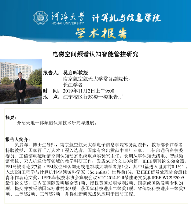 学术报告:电磁空间频谱认知智能管控研究