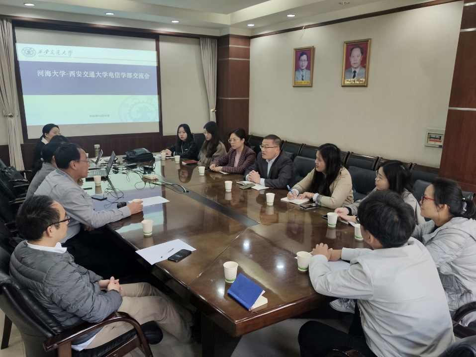 在西安交通大学交流期间,电子与信息学部党委副书记史锋介绍了学校、学部的历史沿革和发展现状,以及学生思想引领、文化建设、创新创业、就业工作等方面的经验做法。刘春田副书记对西交大电信学部的热情接待表示感谢,并简要介绍了信息学部和计信学院基本情况。双方就人才培养、队伍建设、科研竞赛、文化建设等内容进行了深入交流。交流研讨后,学部一行还参观了西安交通大学西迁博物馆,追忆西迁历程,感悟“西迁精神”。
