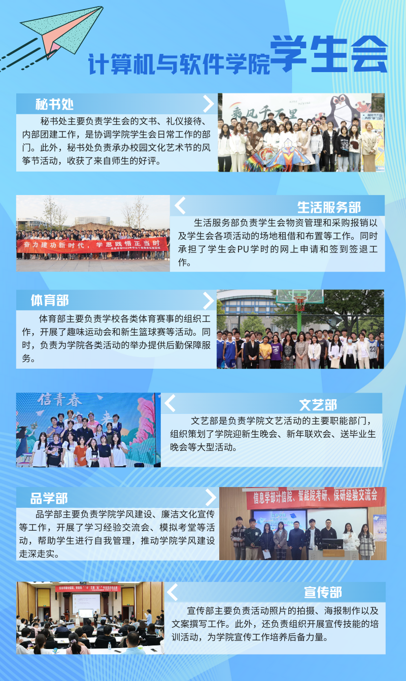 人体艺术 学生会是人体艺术 学生的群众性组织,在院党委领导和院团委指导下,充分发挥了学校、院系和学生之间的沟通纽带作用。学生会由秘书处、生活服务部、品学部、文艺部、体育部、宣传部六个部门组成,开展了丰富多彩的校园活动。