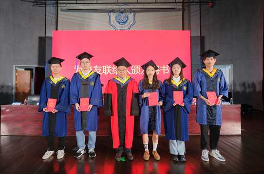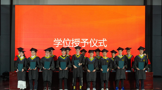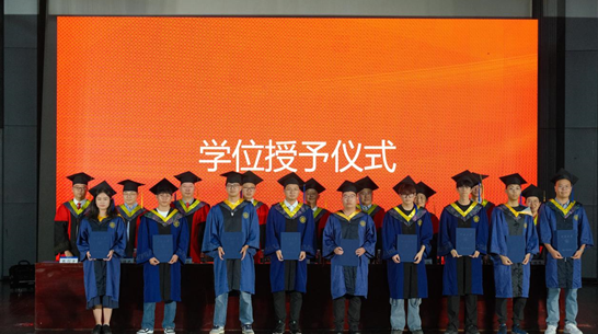 学院领导和老师分别为现场每一位毕业生拨穗正冠、颁发学位证书并合影留念。