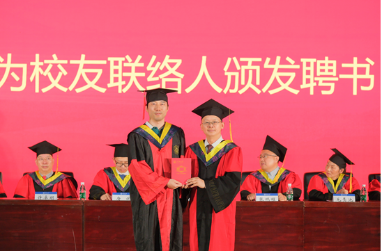 毕业典礼上,学院党委书记蒲晓东、副院长张鹏程、副院长唐斌向15名2024届毕业生颁发校友联络人聘书,党委副书记张剑宇指出,校友工作联络员是校友与母校、学院沟通的桥梁,是学院团结校友、开展校友工作的中坚力量,希望大家充分发挥自身优势,积极主动做好校友联络服务工作。
