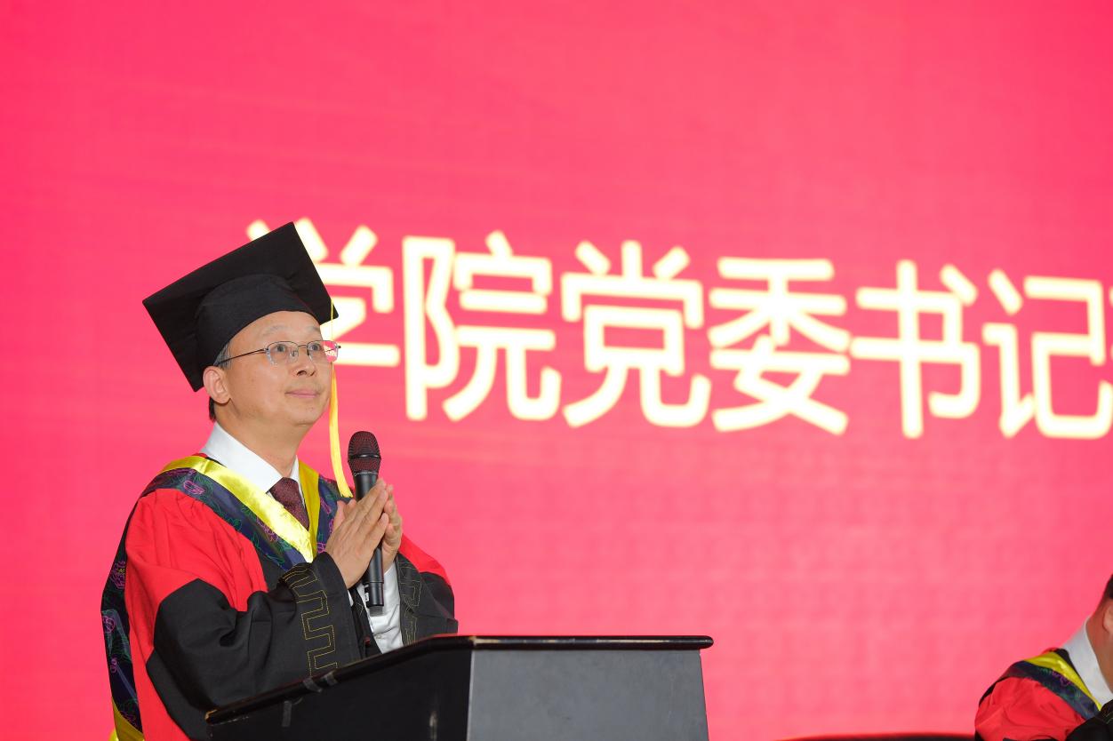 蒲晓东书记代表学院向全体2024届毕业生圆满完成学业表示热烈的祝贺,向为所有学生成长成才倾注无数心血的各位老师和家长朋友们表示衷心的感谢。蒲书记指出,广大毕业生同学传承着一代代计算机人勤勉务实的精神传统,也为未来的计算机学子做出了榜样和表率,希望大家学会以精神品质的不变应对当前信息技术的万变,始终保持奋斗之心不变、担当之心不变、感恩之心不变、豁达之心不变,厚德笃学、精进臻善,牢记“请党放心、强国有我”的青春誓言,唱响新时代的毕业歌。