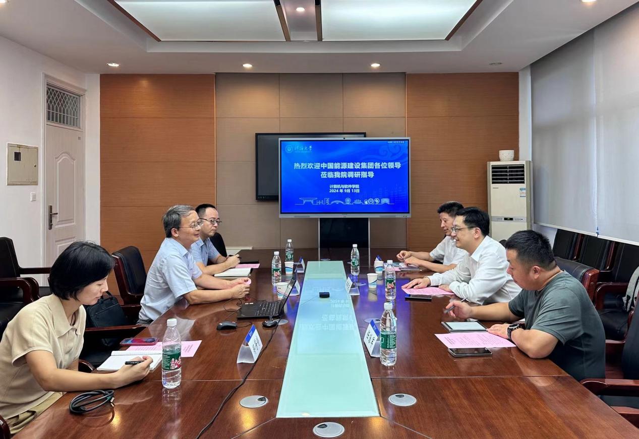 蒲晓东书记对郑晓东主任一行的到来表示热烈欢迎,并对中国能源建设集团长期以来对学校、学院事业发展的大力支持表示诚挚感谢。蒲晓东书记围绕学院历史沿革、学科概况、专业建设、师资队伍、科学研究、人才培养模式等方面做了详细介绍,他希望以此次来访为契机, 进一步深化双方在科技成果转化、创新人才培养等方面的合作,加强交流,发挥各自优势,加快推动各项合作事宜落地见效。郑晓东主任对学校、学院取得的一系列成绩表示祝贺,并简要介绍了中国能源建设集团目前主要业务、重大科研项目、人才招聘政策等方面情况,他表示,将与学院开展更高水平、更广范围、更深层次的合作,充分发挥双方在科研、技术、人才、资源、平台等方面的优势,实现互惠共赢。双方还围绕围绕大数据、大算力、大模型应用等方面进行了深入交流。