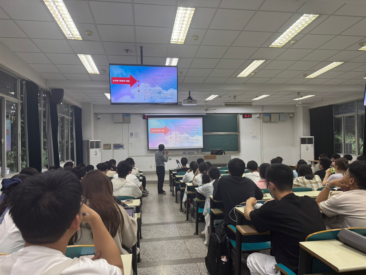 蒲书记在党课中,开篇结合时事政治,从中美日内瓦经贸会谈联合声明谈起,进而切入党课的主题。从中国共产党“救国”史,“兴国”史,“富国”史,“强国”史四个方面,讲述了中国共产党从成立之初至今的光辉历程,在救国、兴国、富国、强国过程中取得的伟大成就和历史经验,引导学生深刻领悟“两个确立” 坚决做到“两个维护”。蒲书记要求广大积极分子,要深入学习贯彻习近平新时代中国特色社会主义思想,努力学习党史、党的创新理论和科学文化知识,坚定不移听党话,跟党走,为建设更强大的中国贡献青春力量。