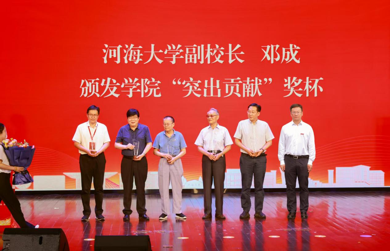 会上,邓成副校长向为学院发展做出突出贡献的教师代表颁发纪念奖杯。