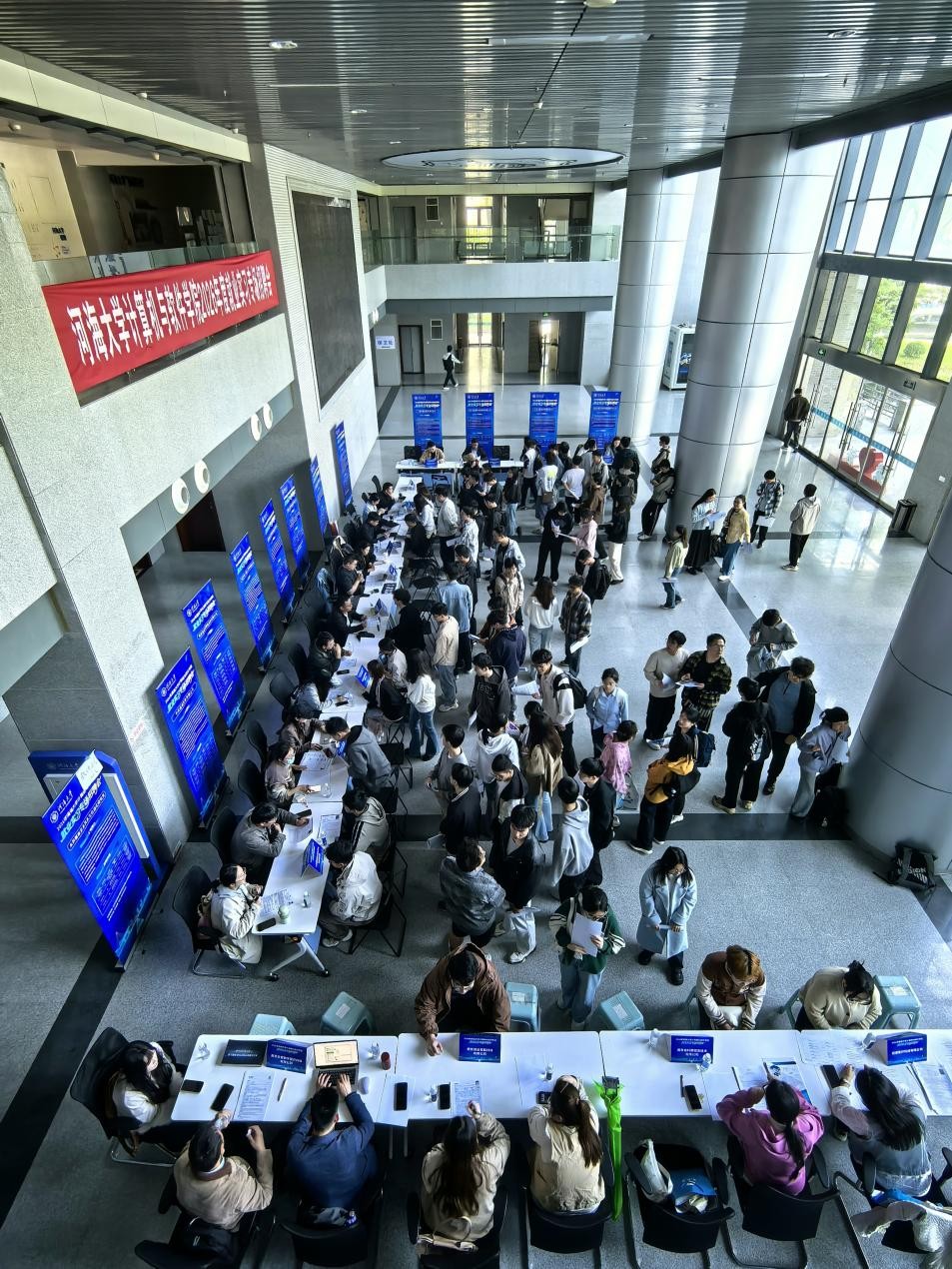 在招聘会现场,同学们手持精心准备的简历,主动与招聘人员交流,介绍个人专业能力与实践经历,并详细询问岗位技术要求、培养体系与发展路径,展现出扎实专业功底与综合素养。参会学生们表示,本场招聘会不仅提供了高质量的实习机会,更让大家看到计算机技术正在深度赋能千行百业,极大拓宽了职业想象空间。