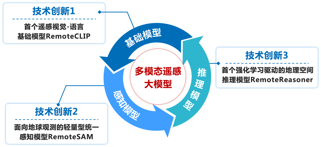 多模态大模型正成为新一代人工智能基础设施,其中面向遥感智能解译的多模态大模型作为“人工智能+遥感”交叉领域的前沿技术,在监测全球资源、环境、社会发展等方面发挥着重要作用。学院刘凡教授团队围绕“基础模型-感知模型-推理模型”研究思路,在遥感视觉语言大规模预训练、轻量型统一感知建模、强化学习驱动的地理空间推理等方面取得系列研究成果。